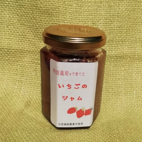特別栽培で育てたいちごをジャムにしました。隣町のオーガニック・パティシエールにお願いしました。からだにやさしく安全なジャムに仕上げました。シンプルながらもてん菜糖で炊いたジャムです。