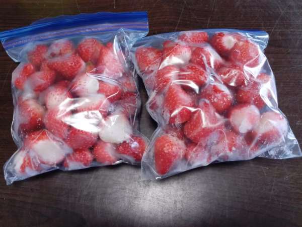 さがほのかの冷凍いちごです。大粒くんから小粒ちゃんまで色々入ってます。そのまま、いちごミルク、スムージー、ヨーグルトなどにすぐにお使いできます。へたはすべてとってあります。500㌘×2袋です。ジップロックに入れてクール冷凍便で発送します。