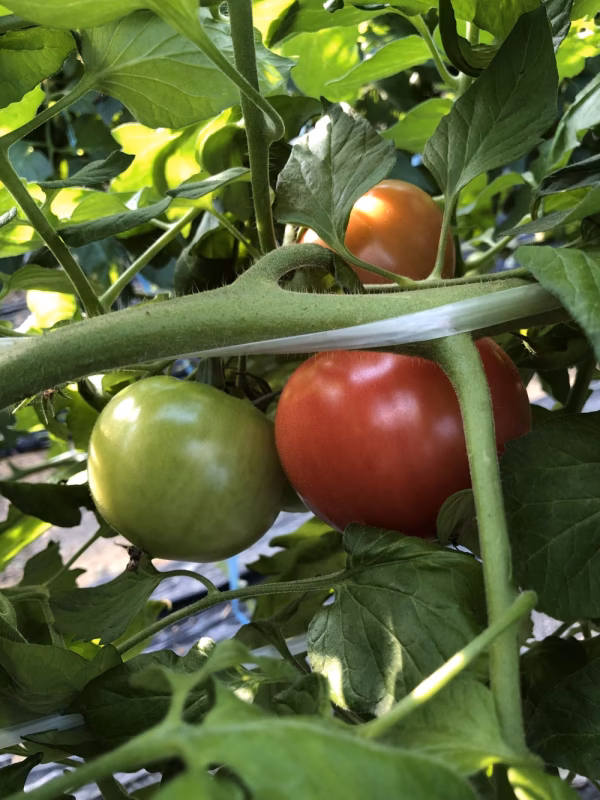 (だいたいはこれからの時期は青い時に収穫するんですね〜!それを出荷→選別→各地へ出荷→スーパー等…の過程で、追熟して赤くなっていくのです^ ^ )