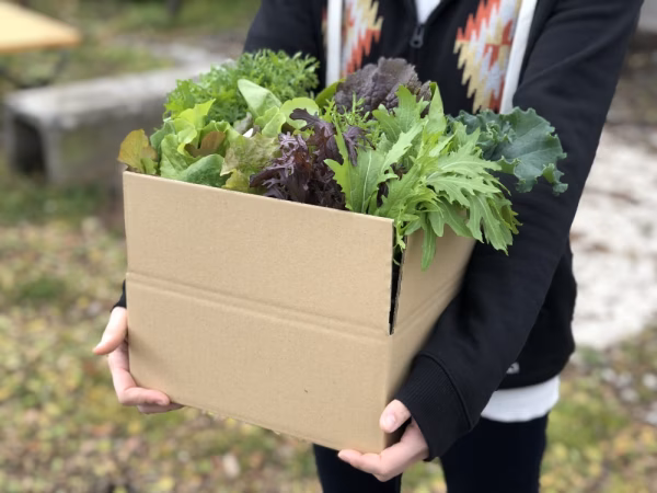 今回の商品は、そんな元気に育った柔らかなサラダ野菜たちを、箱に入るだけ詰め合わせてお作り致します!