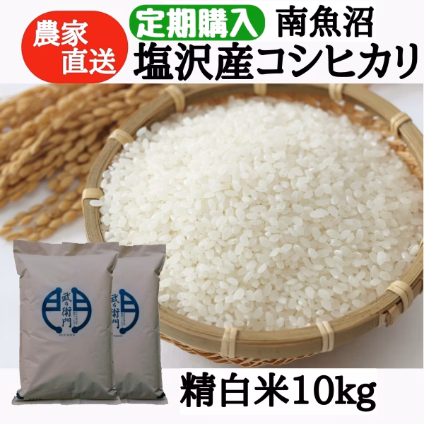 新潟県南魚沼市旧塩沢はおいしいお米の指標、食味ランキング27年連続”特A”地区の中でも特に食味がよいと評判の地域です。この塩沢産コシヒカリを月1回定期配送!