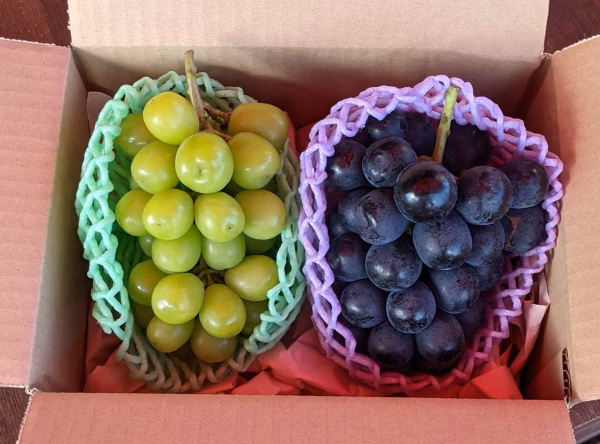 完熟すると粒が外れやすくなり、完全な状態で発送いたしますが、輸送中に粒が外れてしまうことがあります。ご了解ください。外れた粒はできるだけ早くお召し上がりください。
