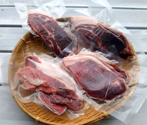 サシが入って柔らかな肩ロース肉と、赤身が美味しいモモ肉のスライス肉をセットにしました。