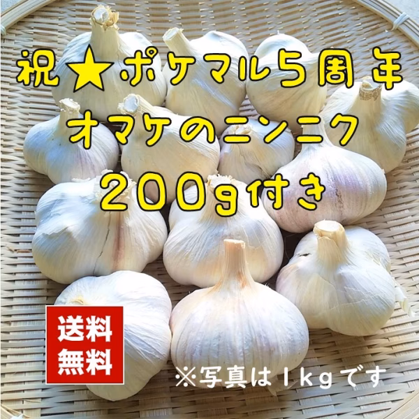 通常の商品(ニンニク1kg)+オマケ(Sサイズ、バラ混み200g)