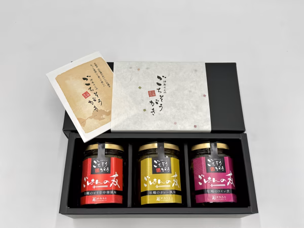 新発見な牡蠣の美味しさ! 自家養殖の牡蠣の身を丸ごと使用しています。 幅広い年代の方に楽しんでいただける味付けに仕上げました。 *セット内容* 【ワイン煮】 生姜を効かせ、赤ワインで甘辛く煮込みました。 【カレー風味】 お子さまも食べやすい甘口のカレー味。 【中華風味】 にんにくと辛みでパンチの効いた中華味。 ご飯のお共に、大人のお酒のあてにもピッタリ! 化粧箱でお届けします。 3つの味が楽しめるギフトボックス、贈り物におすすめです。 各種熨斗の対応可能です。 ご相談ください。 【お届けについて】 こちらの商品は、常温便でお届けします。 ※沖縄県には配送できません。予めご了承ください。