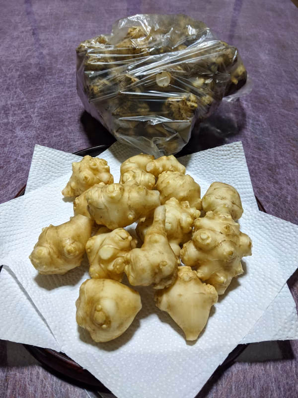 5キロ(箱込み、約600グラムは洗って、あとは土つき)
