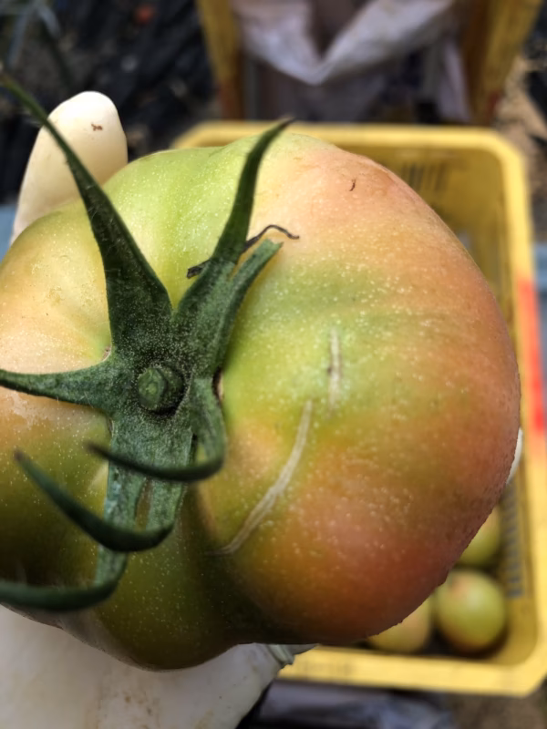 皆さんがスーパーで買っている赤いトマトは、実はこんなに真っ青❗️(のはず…笑)