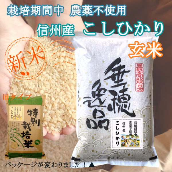 農薬・化学肥料を一切使用していない特別栽培米です。 農薬を使わずに、長野県の自然と「信州ファーム荻原」の私達が育てました。 香り、甘み、粘り、のバランスがとれた長野県産こしひかりです。