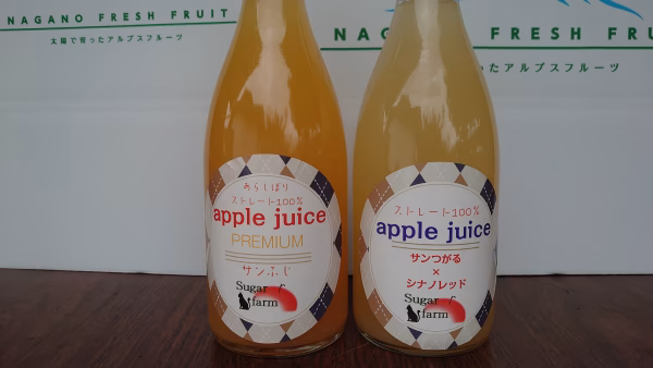 ▼自己紹介 長野県麻績村でりんごの栽培をしていますシュガーファームです。 風土豊かな麻績村の美味しいりんごを全国にお届けいたします。 ▼商品概要 サンふじプレミアムジュース 通常より1.5倍りんごを使用し、果肉が残る様に粗く絞りました。スッキリさはありませんが、食べるジュースの様な味わいとなっております サンつがる×シナノレッド ストレート100%ジュース 甘さのつがるに酸味のシナノレッドをブレンドしスッキリした味わいです。 ▼数量、分量の目安 サンふじ プレミアムジュース1本 サンつがる×シナノレッド ストレート100%ジュース1本 ▼栽培/生産方法、こだわり 完熟まで収穫を待って厳選した物を選びました。 ▼注文に際しての注意点(配送方法や納期指定など) 常温発送となります。冷蔵庫で冷してお召し上がり下さい。