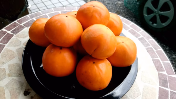 西村早生柿は、昔ながらのゴマの入った甘柿です。10月中旬くらいまで収穫しています。冷蔵庫で冷やしてお召し上がりください。