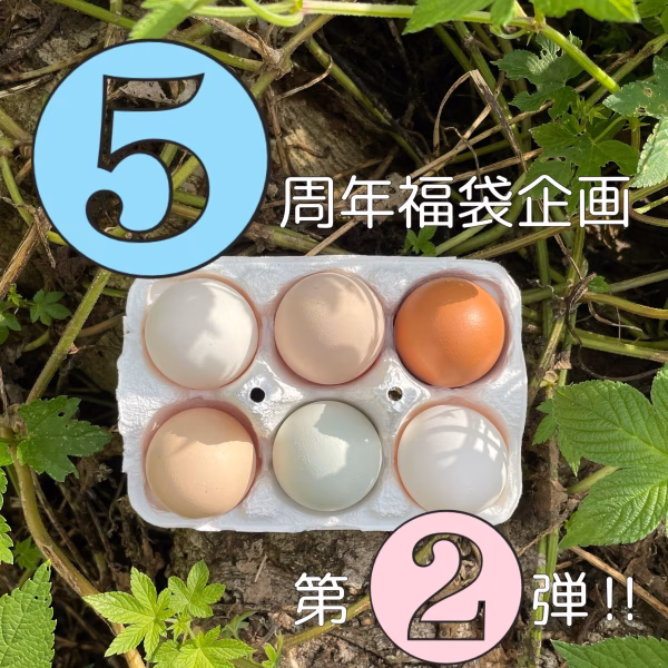 パックの内容は上段中央から時計回りに名古屋コーチン・国産鶏もみじ・しろたまご・アローカナ・国産鶏さくら、左上のポケットは生産者おまかせ!のカラフルなタマゴセットになります!