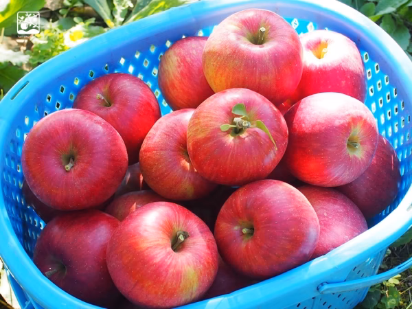 長野県の10月を代表する甘いりんごです。8月の甘いりんご「つがる」、11月の甘いりんご「ふじ」を両親に持ち、甘いりんごのサラブレッド。平成5年、長野県果樹試験場で誕生しました。