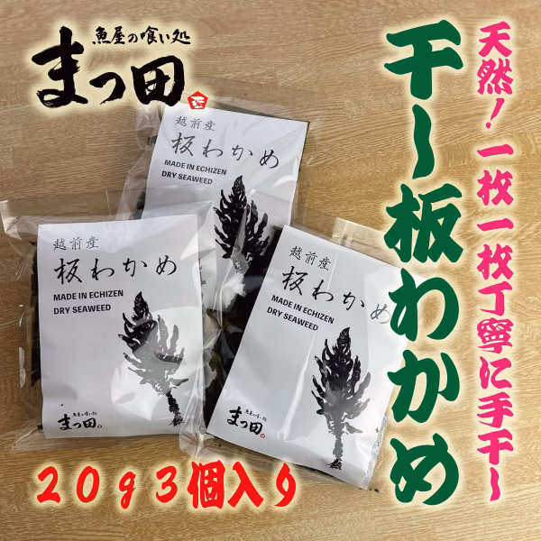 大将まつたく本人が自ら潜って採った天然わかめを一枚一枚丁寧に干しました。