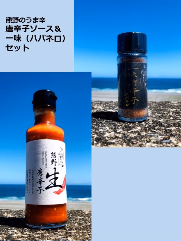 ▼商品概要 熊野産唐辛子(プリッキーヌ)を使用した唐辛子ソース&一味唐辛子(ハバネロ) 共に熊野市産唐辛子使用