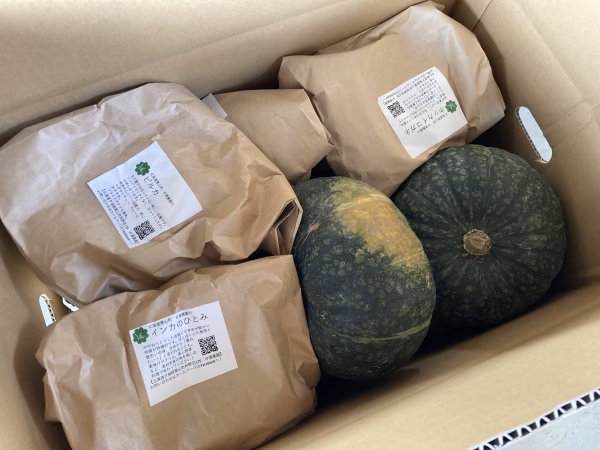 かぼちゃ1玉、じゃがいもが4品種を700gずつのセットと、