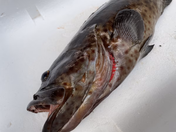 素潜りでの魚突きで捕獲しています。常に頭、エラ付近を狙うように意識していますが、体に撃つ事もあります。