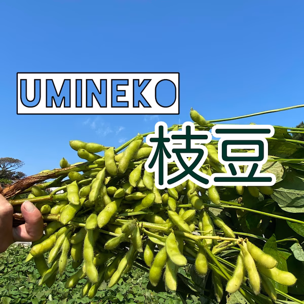施設栽培で大切に育てた枝豆を、丁寧に手もぎしています。