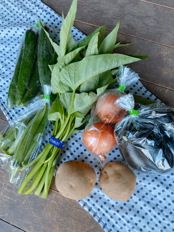 茄子・胡瓜・空芯菜・オクラ・玉ねぎ・ジャガイモ等の詰め合わせセットです。