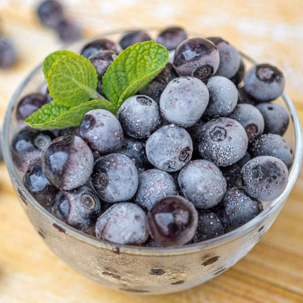 ブルーベリーは収穫後に追熟しないため、当園では樹のうえで完熟した実を早朝より収穫し、その日のうちに冷凍しております。