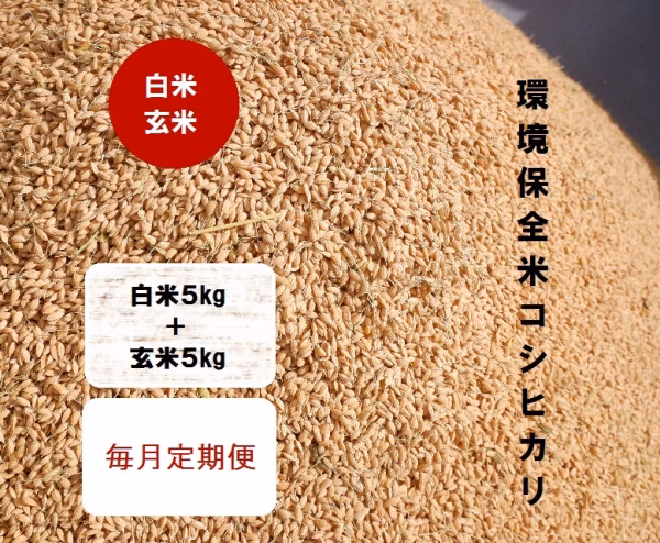 毎月、白米5kgと玄米5kgのセットが届くページです。