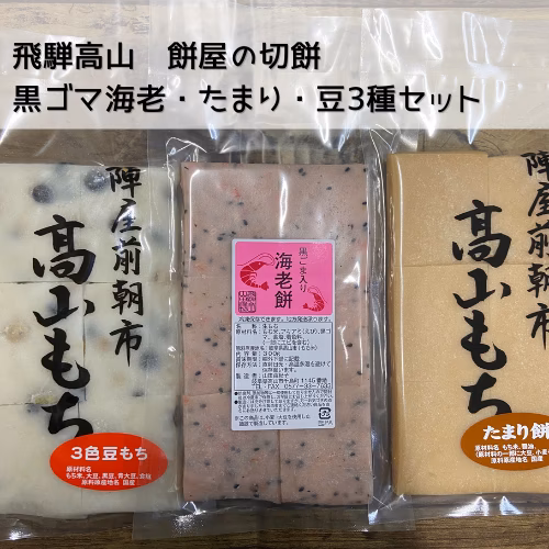 高山産の大豆と黒豆を加えた、ほんのり塩味のお餅です。