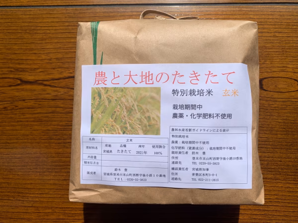 農薬・化学肥料を使用しないで栽培したお米として、宮城県の特別栽培米の認証を取得しています。
