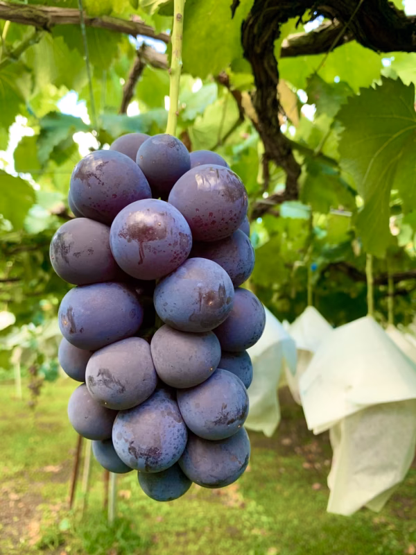 果皮の色は黒に近い紫色、糖度が高く、大粒なのが特徴です。