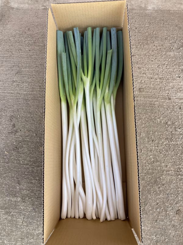 太さが不揃いで、曲がり有りが混ざっているネギです。