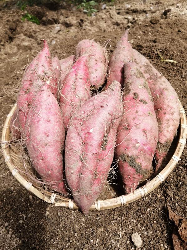 ✱果肉の色が黄色くて繊維質が少なく、蒸したり焼くとホクホクとねっとりの中間タイプのさつまいも「紅あずま」。