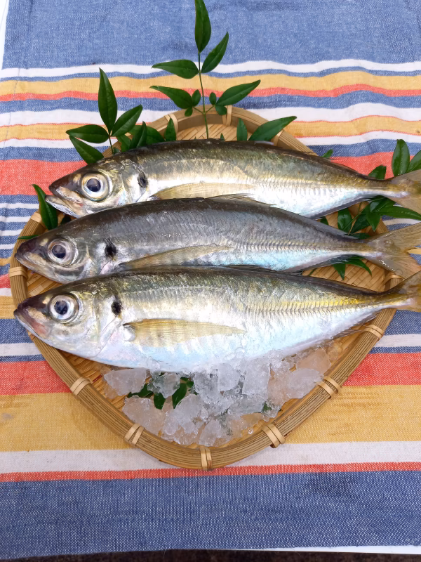 天然物のアジを手釣りで丁寧に釣り上げています。