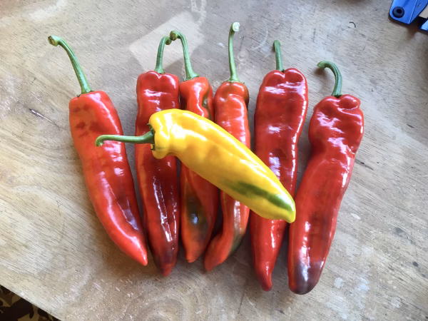 パレルモはかなり大きく、長さ20cm前後にもなります。形は万願寺唐辛子のような感じで首のところにくびれが出きる傾向にあります。