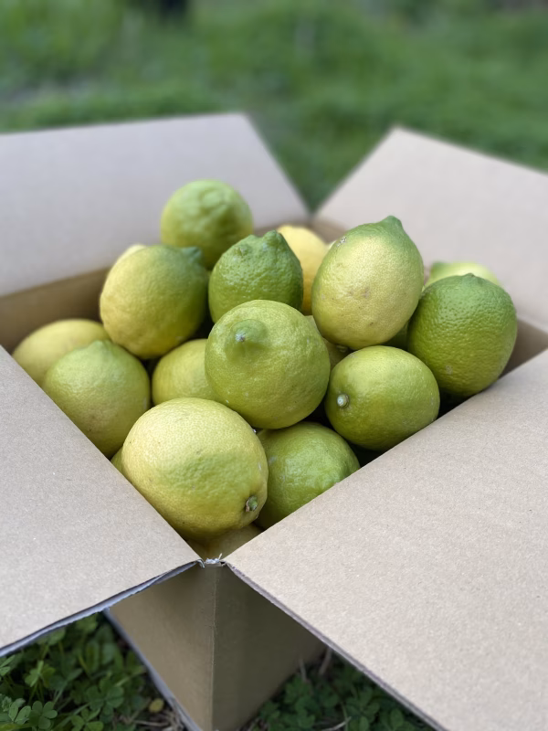 ▼自己紹介 ふじやファームの藤中と申します。 有機的な栽培を志し、島で取れるものを使用して循環型の農法に取り組んでいます。レモンの生産をメインに柑橘類とアボカド、オリーブの栽培を行っています。 ▼商品概要 この時期だけしか味わえないレモンは、香りが芳醇で箱を開けた時の香りは幸せの瞬間です!イエローよりは果汁が少ないですが、果皮の香りと刺激的な酸味がクセになる希少な旬の味です! ワックスや防腐剤を使用していないので皮までまるごとお召し上がり頂けます!! ▼品種・味の特徴・食べ方 ビアフランカというトゲの少ない品種です。 味はイエローほどマイルドではなく刺激的な酸味が特徴です!料理はもちろんお酒や炭酸水など、お菓子にも最適な一品です! ▼数量、分量の目安 大きさにもよりますが、概ね1キロあたり8個前後が目安です。 ▼栽培/生産方法、こだわり 離島の中で限られた資源を有効に活用して、環境にも人にも負荷の少ない栽培方法を女手一つで丁寧に行なっています。お子様からご年配の方までどなたでも安心してお召し上がり頂けるので是非多くの方にお召し上がりいただきたいです! 土づくりにも人一倍こだわり、その土に合う堆肥の施用を毎年試みています。木にとって最高な土づくりを日々研究しつつ行っています。 ▼注文に際しての注意点(配送方法や納期指定など) ※配送方法は全て「常温」での発送です。 ※関東地方以北は「午前中着」の指定が出来かねる場合がございますのでご了承下さいませ。