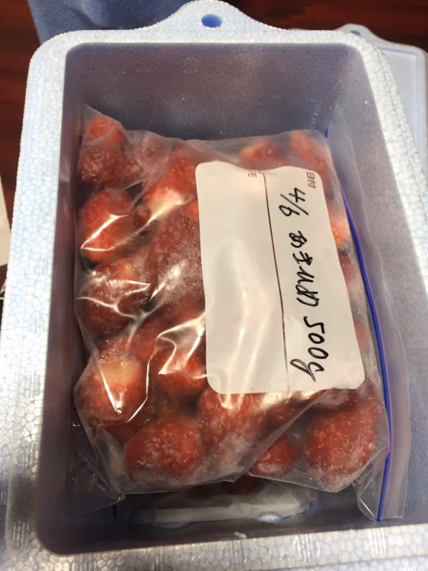 今シーズンの石垣いちごをヘタを取って冷凍にしたものです。
