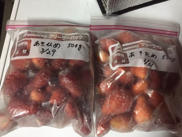 今シーズンの石垣いちごをヘタを取って冷凍にしたものです。