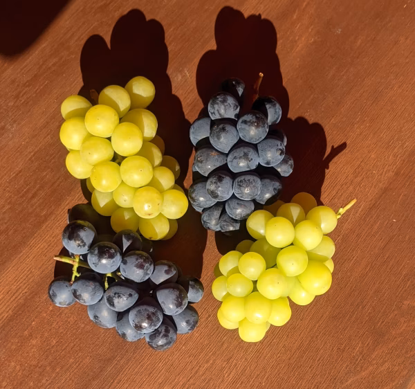 完熟したぶどうは、粒が黄色味を帯びてきます。
