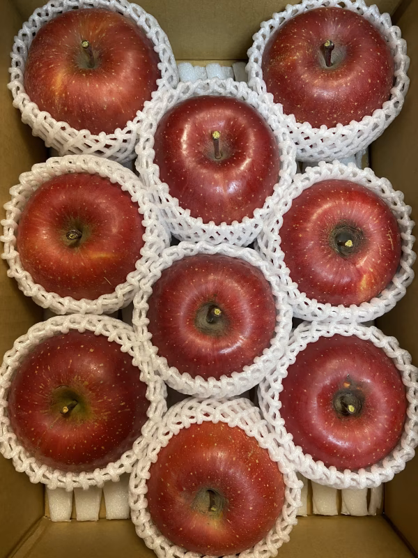 ※りんごは完熟すると、りんご自身が内側から作り出す天然のワックス成分によりベタベタすることがありますが、安心してお召し上がりください。