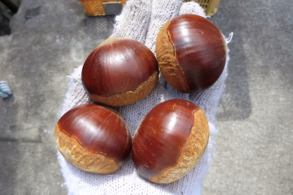 10月上~中旬頃から収穫する大粒の晩成種になります。 サイズは23g~30gの大粒になります。 肥料も使用していないので20g程度の物も入りますのでご了承ください。 1キロで約40粒前後になります。別途100g程多めに入れる量になります。 粒が大きく、甘みがあり品質の良い品種です。 渋皮を剥いても可食部が大きです。 無農薬・無肥料・除草剤不使用・燻蒸処理をしていません。 何の薬剤も使っていないので安心してお使いください。 1粒1粒チェックをして梱包しますが、虫食いが混入する場合もありますのでご了承ください。1キロ100g程多めに入れて発送を致します。 また発送時と水分量の違いでグラム数が少なくなる事がありますのでこちらもご了承ください。 (鬼皮の下部にカビが発生する場合があります。) 佐川急便クール便にてお届けいたします。 また鳥獣被害や台風などの気象状況により発送ができない場合はキャンセルとさせていただきますのでご了承ください。 北海道・沖縄への発送はできません。 北海道への配送については別途お作りしますのでご相談ください。