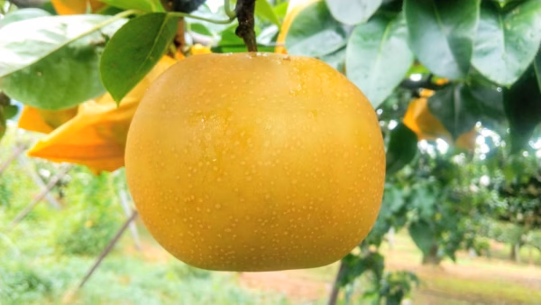 陽水は晩生種の梨で、とても大きく、シャリシャリと歯触りがよく、甘味の中にほんのり酸味があり、果汁も豊富でとても美味しい梨です。