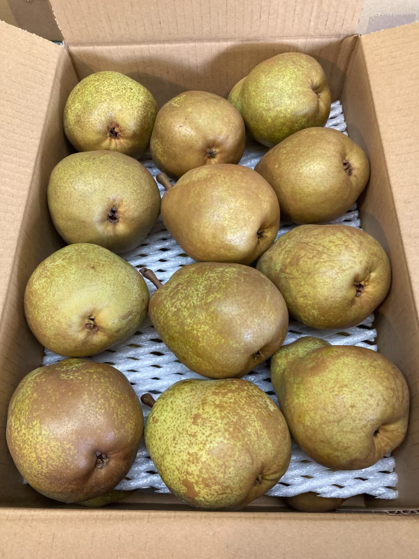 追熟過程で、腐敗に向かう果実も出るのが、西洋梨🍐の特徴です。そのため、ロス分を考慮して、箱込みで5.4から5.5キロほどになります。
