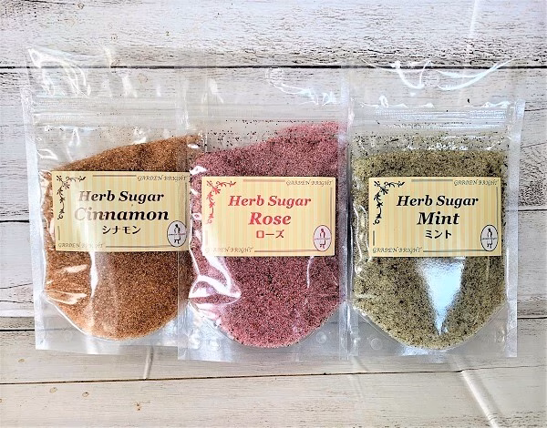 ◆シナモンシュガー:グラニュー糖、シナモンパウダー、水 ◆ローズシュガー :グラニュー糖、ローズパウダー、水 ◆ミントシュガー :グラニュー糖、ミントパウダー、水