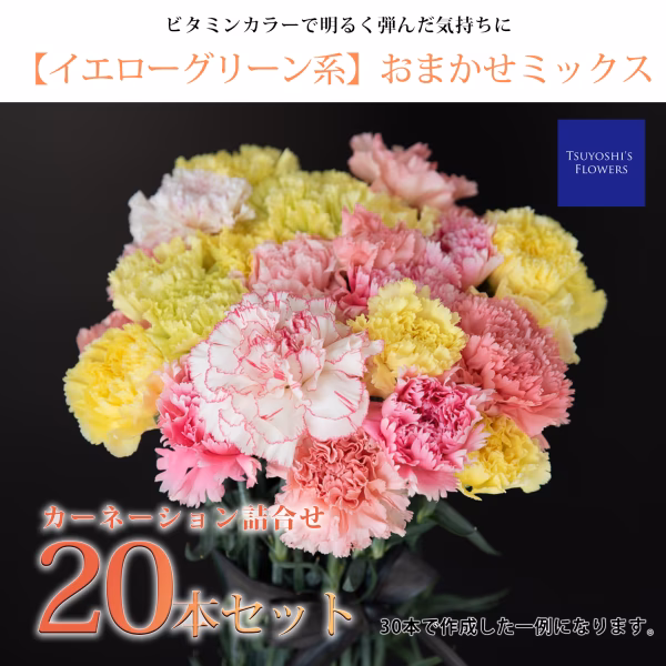 イエロー・グリーン・グラデーション系が入ったカーネーションの詰合です。きっとお喜びいただけるでしょう。
