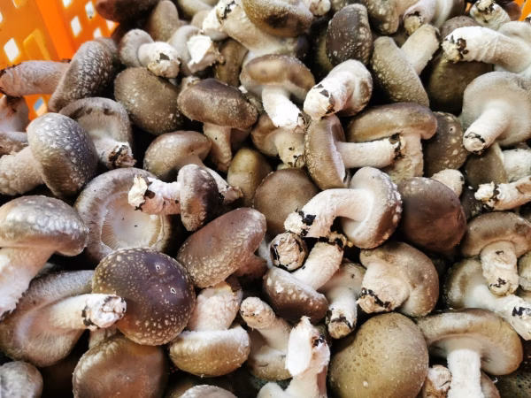 ・宅急便60サイズがの段ボールに正味1kg(30個前後)のしいたけが入っています。