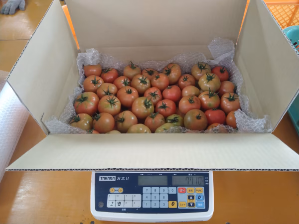 - 段々トマトのサイズが小さくなって甘くなる時期です。小さいトマトの方が味が濃く価値が高いです。 リピート注文される方は夏場のトマトとの違いに驚かれると思いますが、味は上がっていますので味の良いトマトが欲しい方はご注文ください。 冬に向けて気温が低下し、収穫量が減少していきます。 収穫量が少ないので選別出来る物が少なく、以前より見た目の悪い物が入ると思います。 食べられない物は入れませんが、気になされる方はご購入をお控えください。 トマトが小さいので以前より箱に入る量が少なくなっています。限界まで入れた最低重量が7.5kgです。