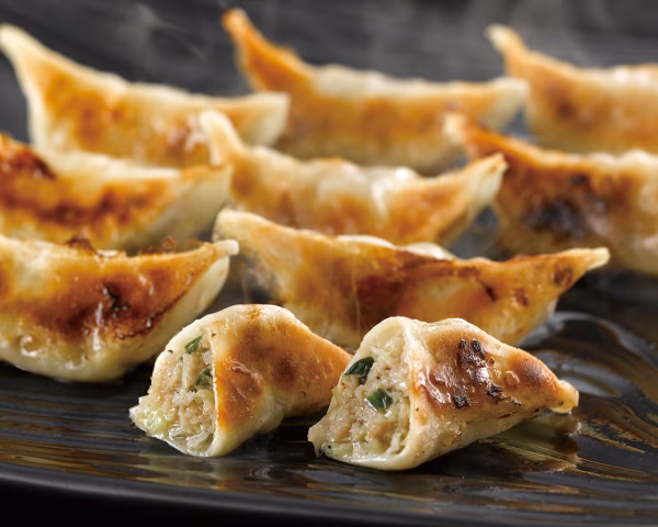 - 豚肉 野菜(玉葱、生姜)、片栗粉、卵、ネギ油、醤油、塩、酒、グラニュー糖、香辛料【皮】小麦粉、食塩/酒精、乳化油脂(一部に小麦、卵、豚肉、大豆を含む)