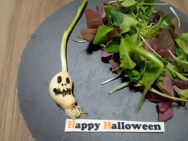 写真のように発芽にんにくをハロウィンバージョンにして楽しみましょう!!