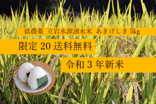 今年の新米5kgを20袋に限り送料無料でお届け致します!