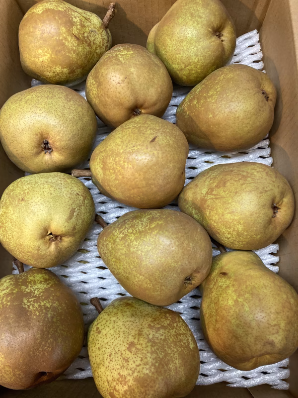 追熟過程で、腐敗に向かう果実も出るのが、西洋梨🍐の特徴です。そのため、ロス分を考慮して、箱込みで5.4から5.5キロほどになります。