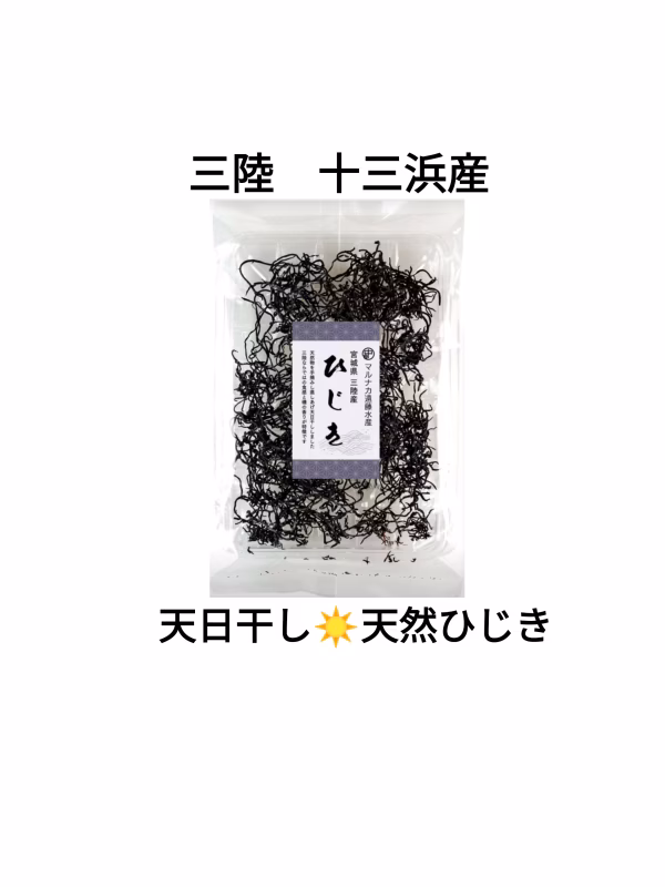 - ●ひじき 名称:乾ひじき 原材料:ひじき(十三浜産) 内容量:21g 加工者:㊥マルナカ遠藤水産 宮城県石巻市北上町十三浜字大指89-2 遠藤俊彦