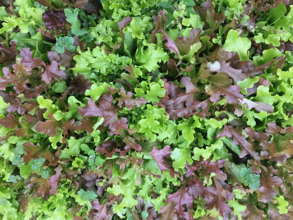 サラダ用の葉物野菜たちが、収穫時期になりましたので、100サイズの段ボールにすきまなく詰めて出荷致します。