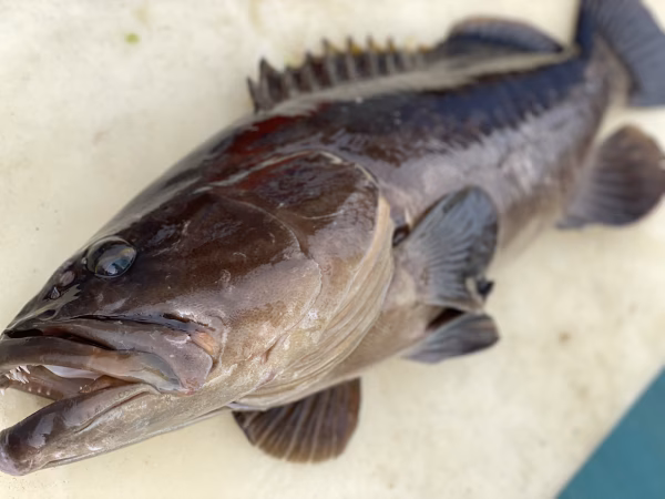 大きな岩がゴツゴツしていてクエが住み着きやすいポイントを狙って縄を仕掛け、約1時間後に回収しクエを釣り上げます。